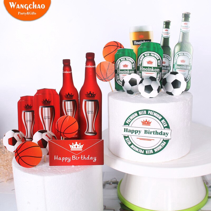 1 Set Beer Basketball Football Happy Birthday Cake Topper Festival