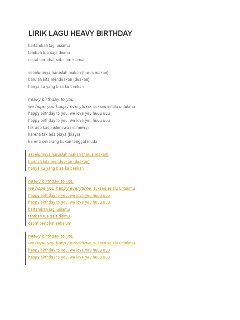 Lirik Lagu Heavy Birthday Heavy Birthday To You We Hope You