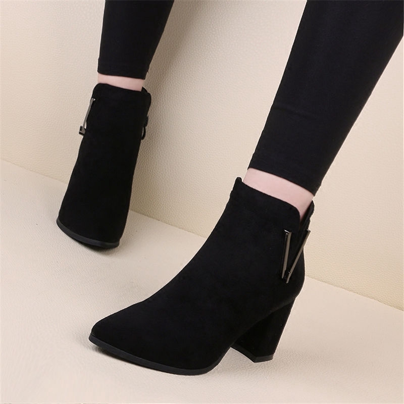 Mcckle Autumn Women Ankle Boots Female High Heel Shoes Flock
