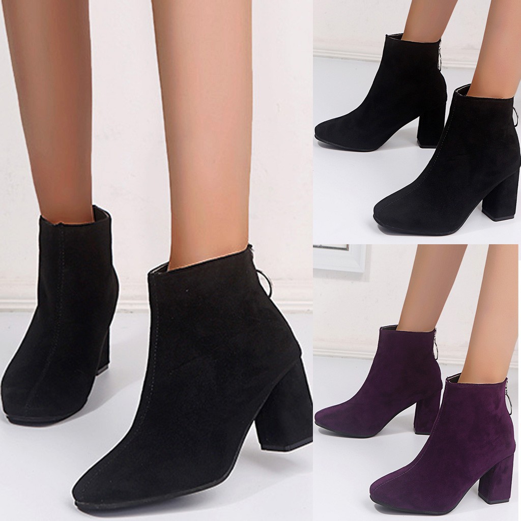 Women Boots Women Winter Flock Sexy Ankle Zipper On Back Square
