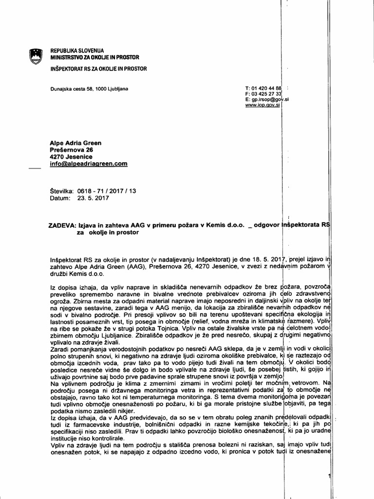 Odgovor Inspektorata Rs Za Okolje In Prostor 1