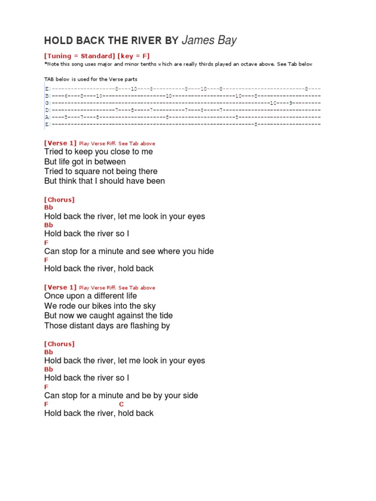 Hold Back The River Chords Lyrics James Bay Detailed Version