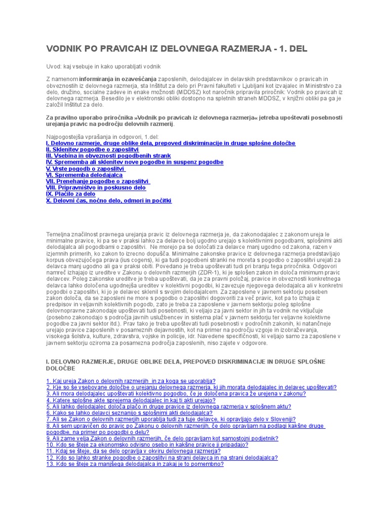 Vodnik Po Pravicah Iz Delovnega Razmerja I Del