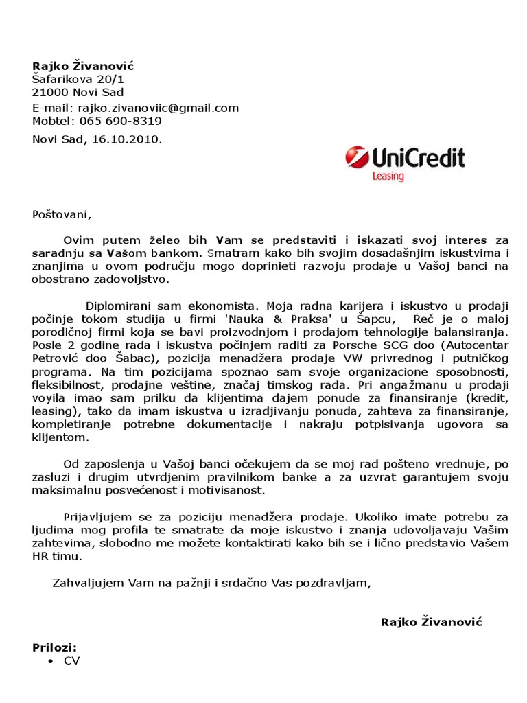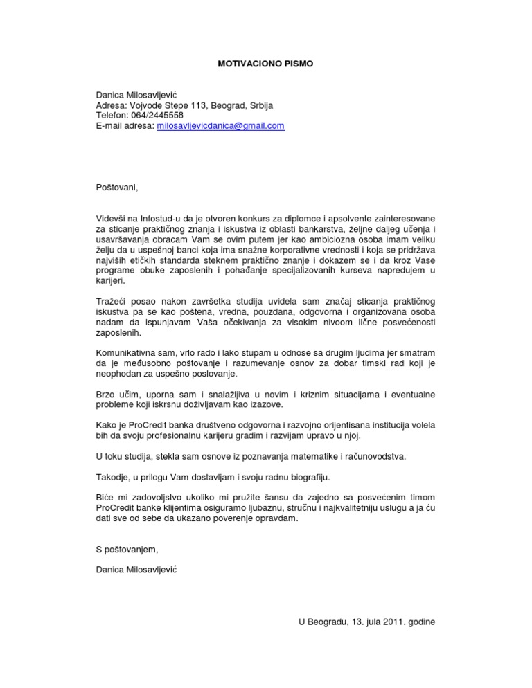 Kako Napisati Motivaciono Pismo Primer