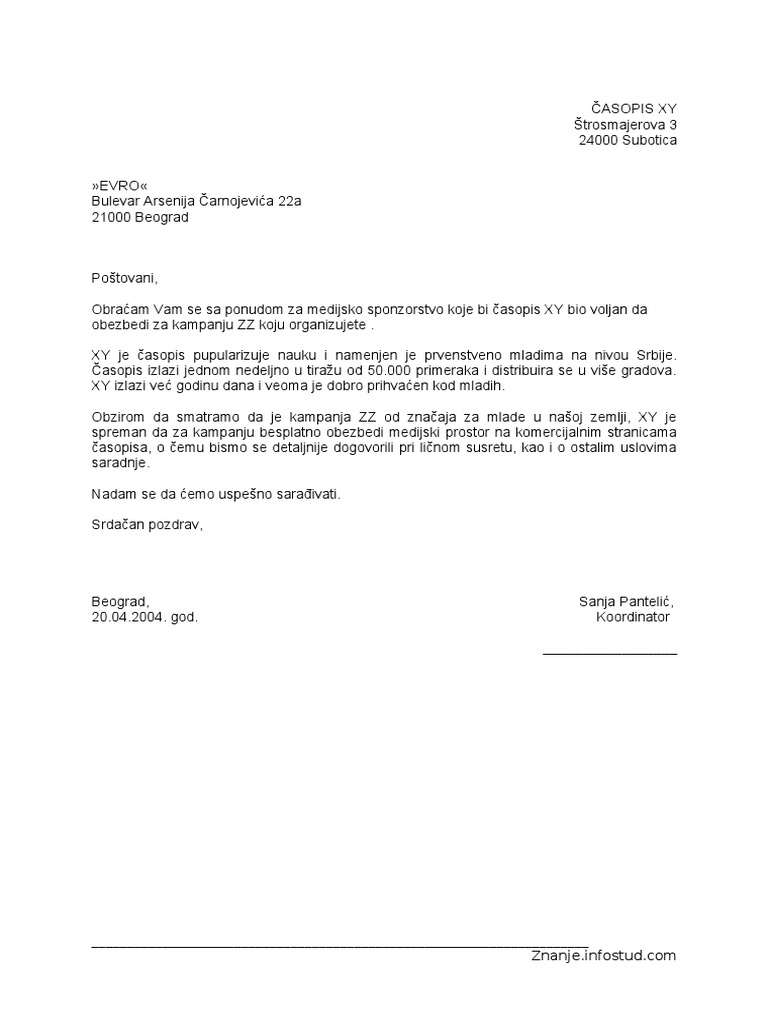 Poslovno Pismo Princip I Primer Poslovnog Pisma Sluzbeni Dopis Memo Komunikologija