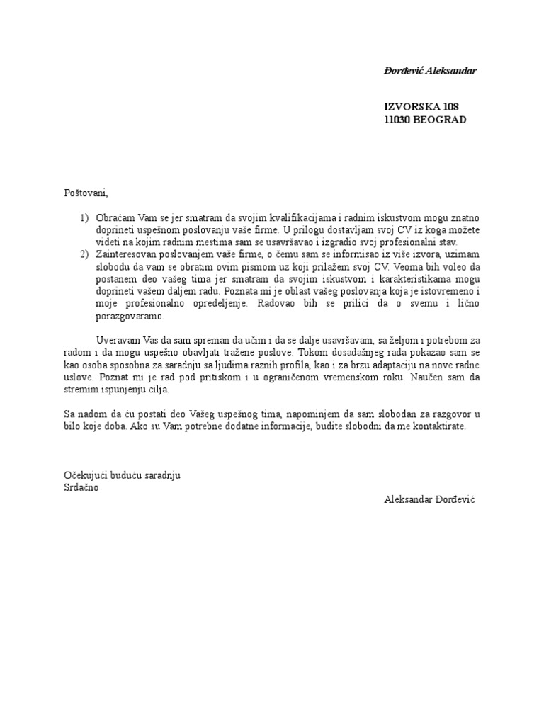 Motivaciono Pismo Primer I Kako Napisati Komunikologija