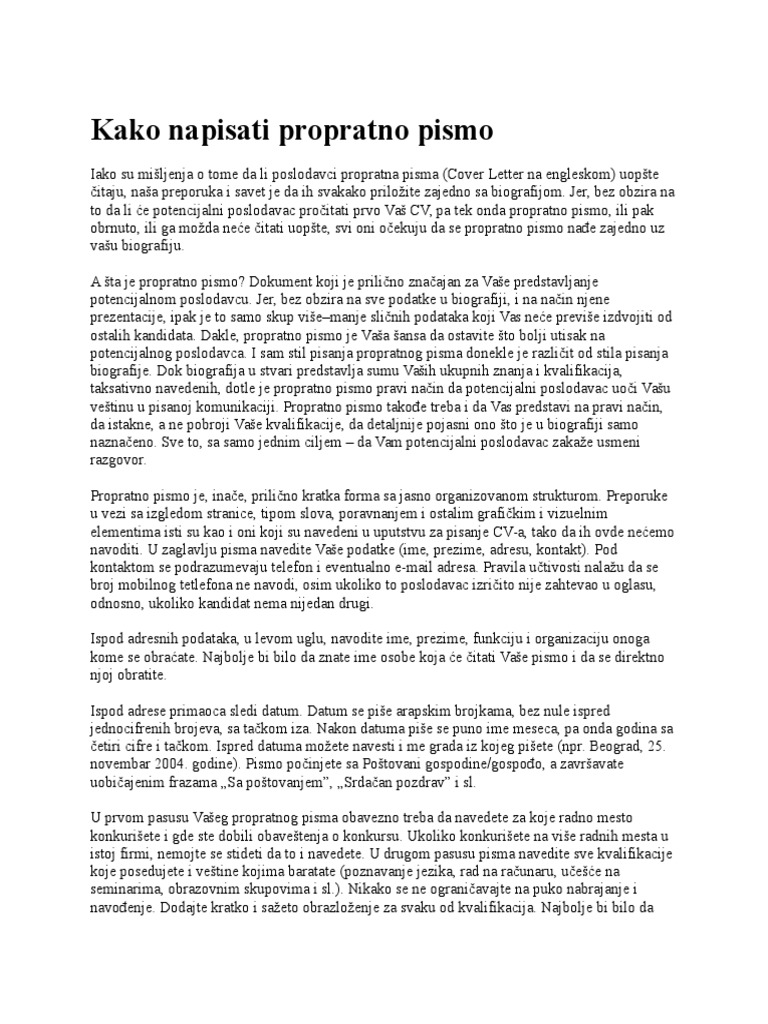Kako Pripremiti Propratno Pismo Primjer Propratnog Pisma Za