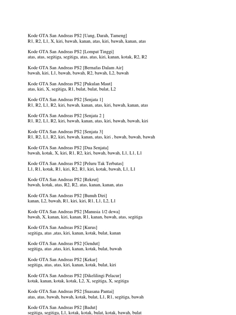 Kode Gta San Andreas Indonesia Ps2 Vipdownloadimage
