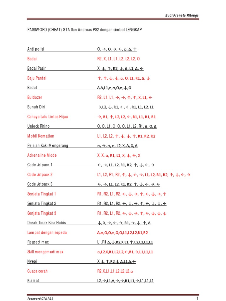 Cheat Gta San Andreas Ps2 Lengkap Docx Cheat Gta San Andreas Ps2