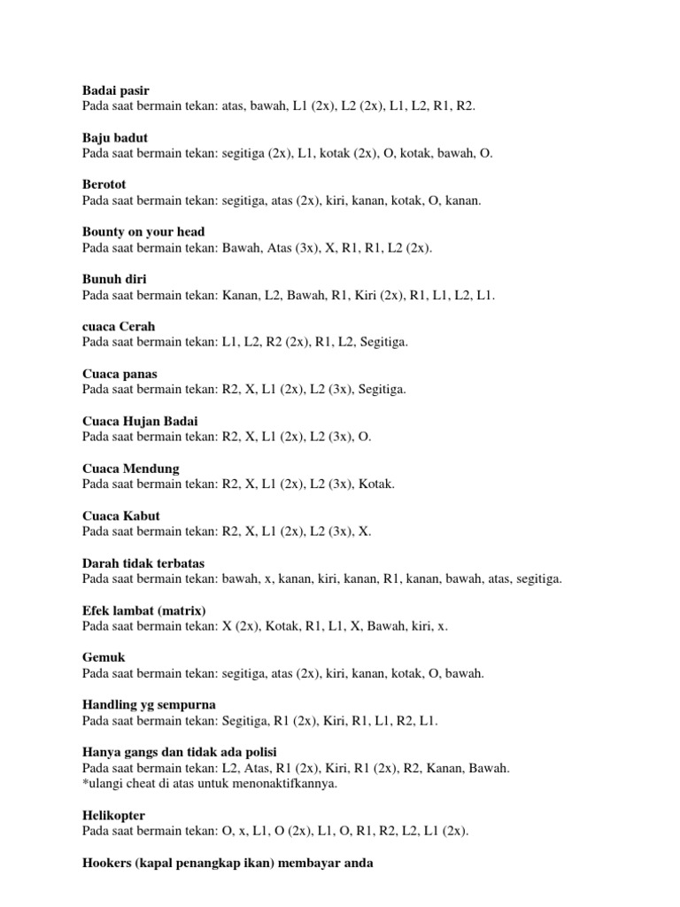 Cheat Gta San Andreas Ps2 Lengkap Bahasa Indonesia Terbaru Update