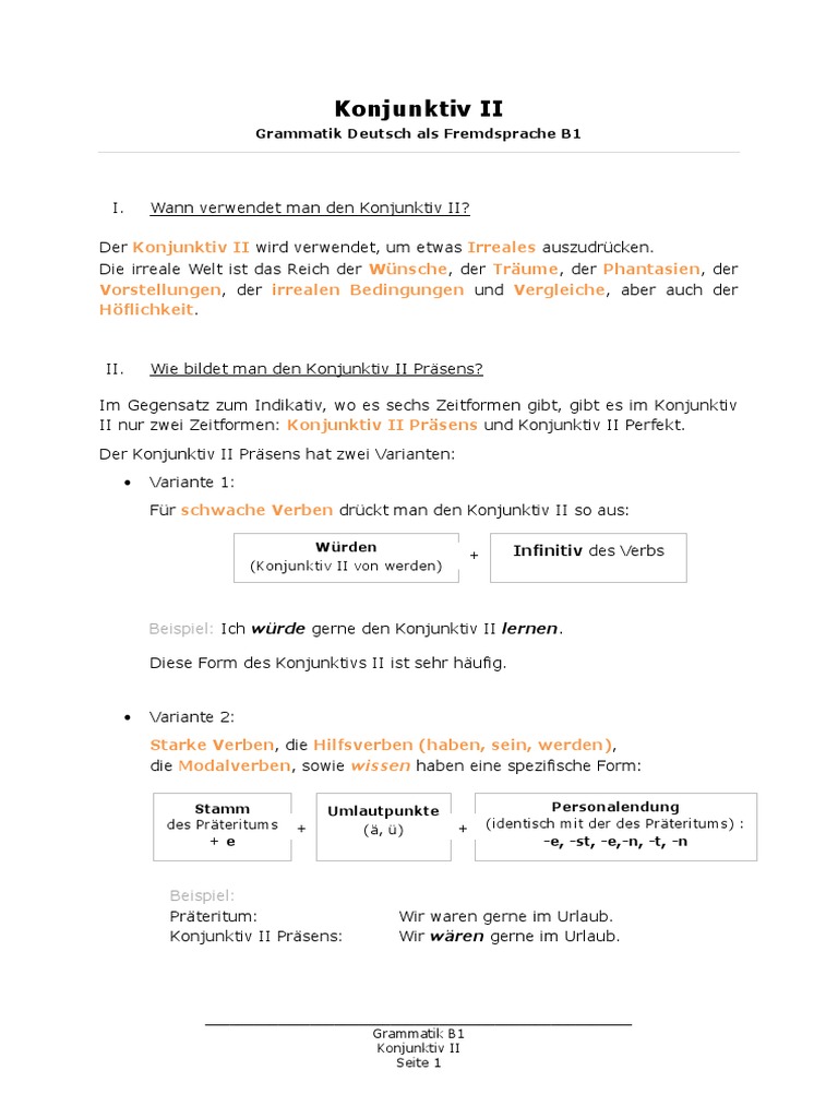 Konjunktiv 2 übungen Pdf B1